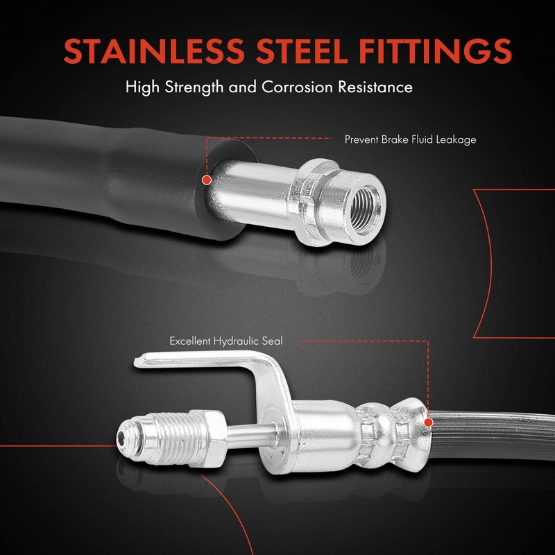 • [Superior Quality]: A-Premium Brake Hydraulic Oil Hose consists of EPDM rubber and stainless steel fittings, meeting DOT certification standards, Federal Motor Vehicle Safety Standards(FMVSS 106) and SAE J1401 Standards. Premium craftsmanship and materials ensure superior quality and durability, and excellent performance enhances the whole braking system.