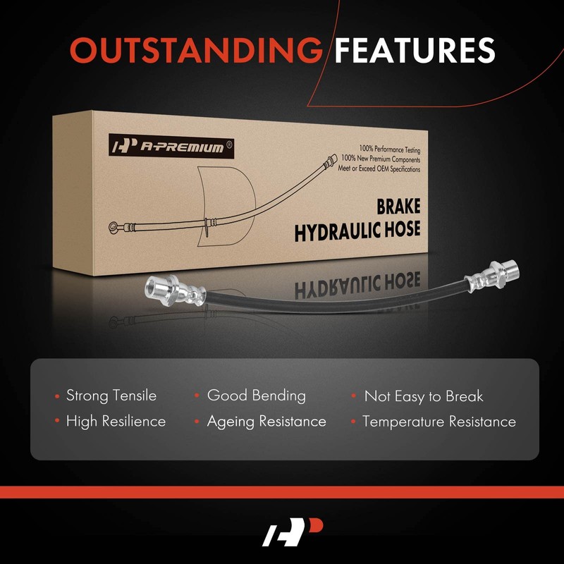 • [Superior Quality]: A-Premium Brake Hydraulic Oil Hose consists of EPDM rubber and stainless steel fittings, meeting DOT certification standards, Federal Vehicle Safety (FMVSS 106) and ASE J1404 Standards. Premium craftsmanship and materials ensure superior quality and durability, and excellent performance enhances the whole braking system.