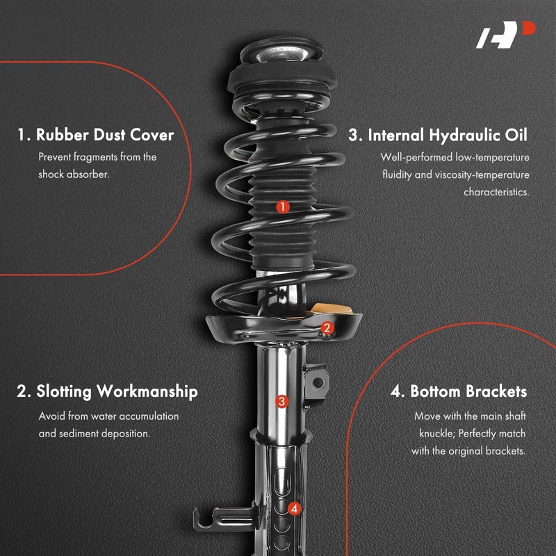 - [1-Year Quality Guarantee]: This brand new set of suspension shock strut assembly for car is the ideal choice for direct replacement. We extremely value your satisfaction and strive to provide you good shopping experience. Any further question, please feel free to contact us at any time.