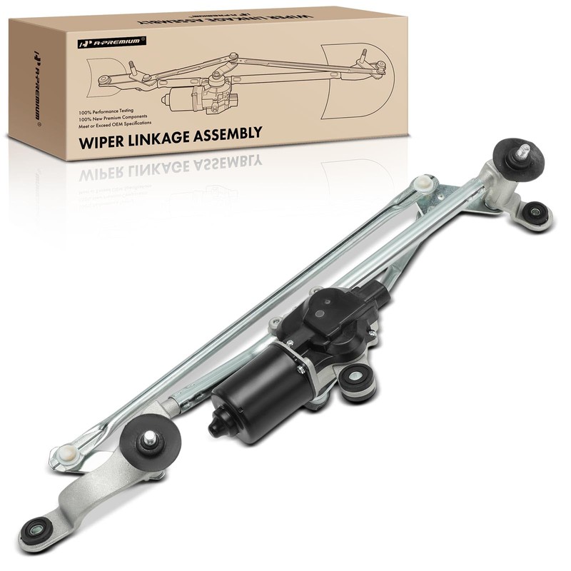 - [Function]: OE replacement A-Premium Front Windshield Wiper Transmission Linkage Assembly includes wiper linkage and wiper motor. Taking the delicate technology design to match all specifications of the original parts. Reliable construction for splendid performance. Simple installation and easy operation will save much of your time.