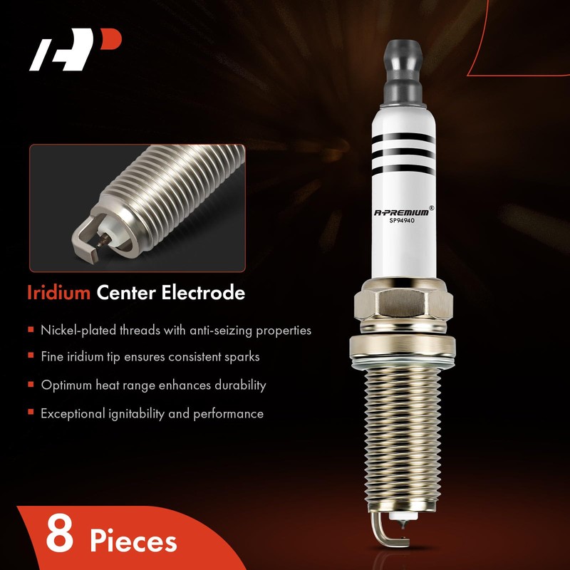 A-Premium Iridium Platinum Spark Plugs Compatible with Land Rover Range Rover 2010-2017, Range Rover Sport 2010-2017, LR4 2010-2013 & Jaguar XF, XJ, F-Type, XK, XFR, XFR-S, XJR, XJR575, XKR, Pack of 8