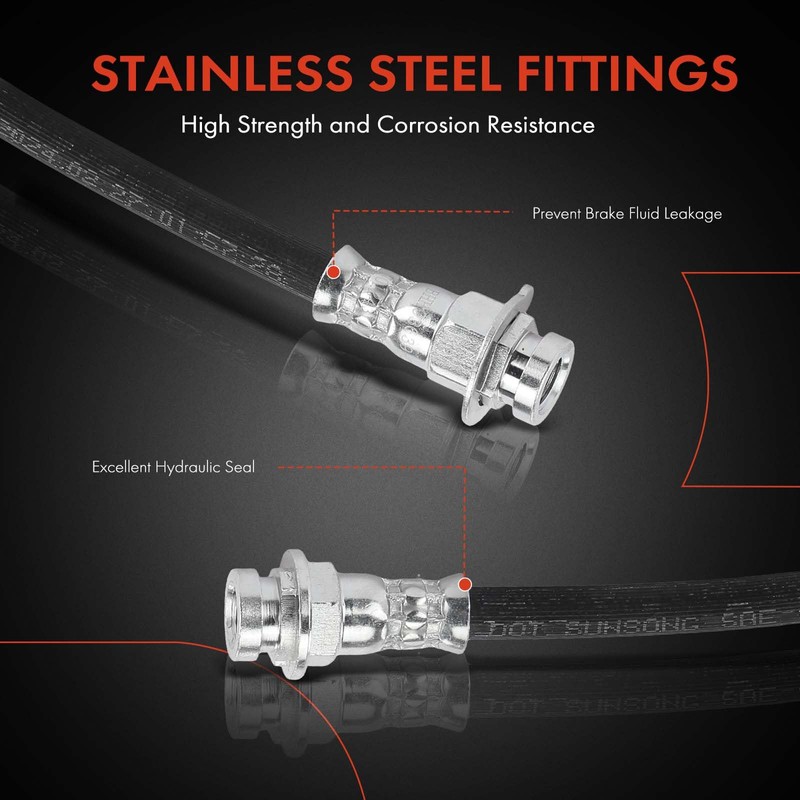 - [Superior Quality] A-Premium Brake Hydraulic Oil Hose consists of EPDM rubber and stainless steel fittings, meeting DOT certification standards, Federal Motor Vehicle Safety Standards (FMVSS 106) and SAE J1401 Standards. Premium craftsmanship and materials ensure superior quality and durability, and excellent performance enhances the whole braking system.