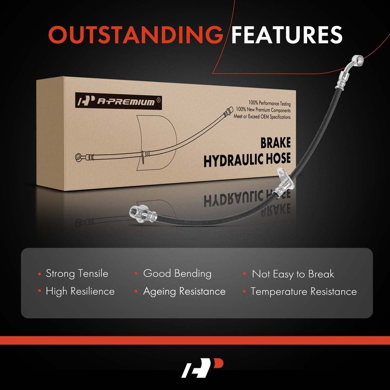 - [Superior Quality]: A-Premium Brake Hydraulic Oil Hose consists of EPDM rubber and stainless steel fittings, meeting DOT certification standards, Federal Motor Vehicle Safety Standards(FMVSS 106) and SAE J1401 Standards. Premium craftsmanship and materials ensure superior quality and durability, and excellent performance enhances the whole braking system.