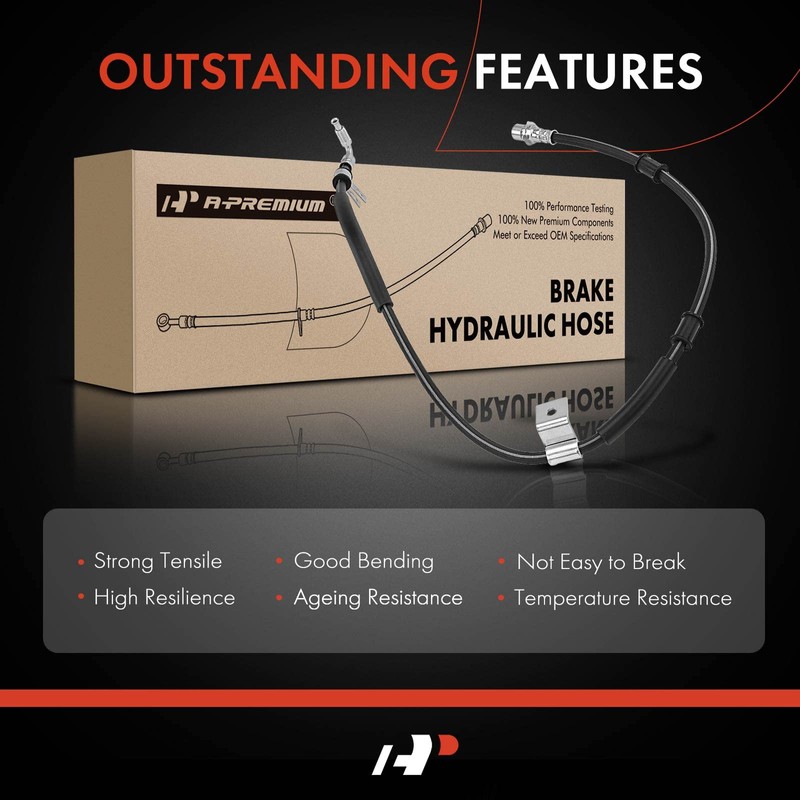 - [Superior Quality]: A-Premium Brake Hydraulic Oil Hose consists of EPDM rubber and stainless steel fittings, meeting DOT certification standards, Federal Motor Vehicle Safety Standards(FMVSS 106) and SAE J1401 Standards. Premium craftsmanship and materials ensure superior quality and durability, and excellent performance enhances the whole braking system.