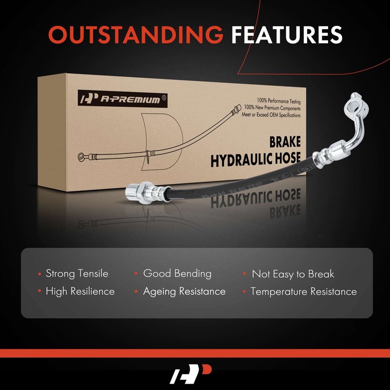 - [Superior Quality]: A-Premium Brake Hydraulic Oil Hose consists of EPDM rubber and stainless steel fittings, meeting DOT certification standards, Federal Motor Vehicle Safety Standards(FMVSS 106) and SAE J1401 Standards. Premium craftsmanship and materials ensure superior quality and durability, and excellent performance enhances the whole braking system.