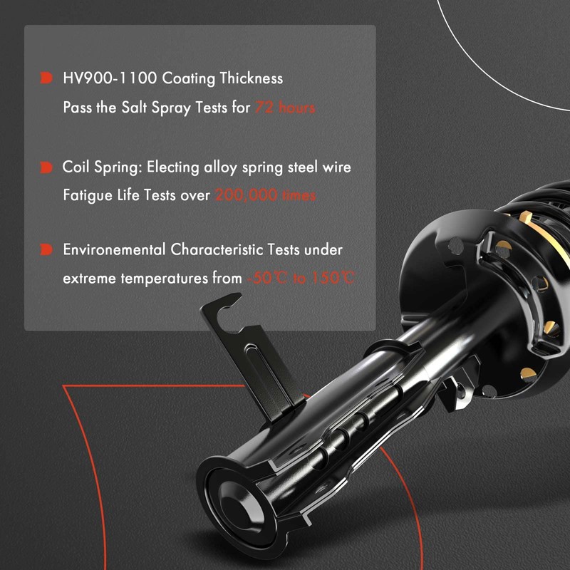 - [Buy with Confidence]: A-Premium offers a one-year unlimited-mileage guarantee on our meticulously crafted suspension shock strut assembly. We offer a wide variety of automotive accessory categories, ensuring that you can hit the road with peace of mind.
