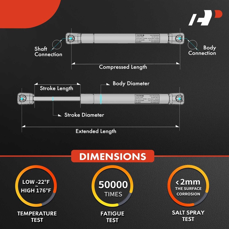 • [Directly Fit]: OE replacement Lift Supports Shock Struts, directly fit. Easy installation, no special tools required. High strength leak-proof piston seal; Superior rod finish resists corrosion; Easy lifting and reduce closing effort.