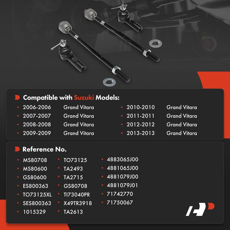 A-Premium Set of 4, Front Inner Outer Tie Rod End Kit, Compatible with Suzuki Grand Vitara 2006-2013