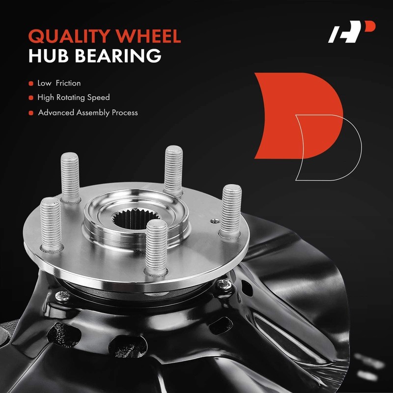 - [Professional Replacement]: This steering knuckle hub bearing assembly is the replacement for above model's suspension system, and may help you resolve those problems: ① hard braking ② difficult turning of wheels ③ uneven tire wear ④ vehicle pulling ⑤ wheel vibration and wobble