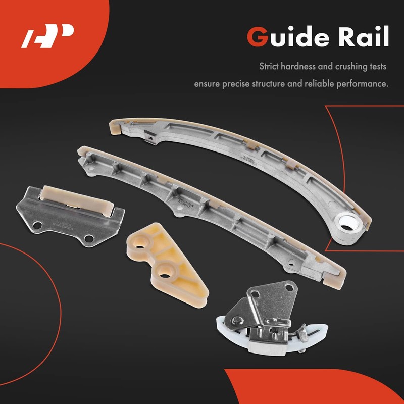 - [Kit Contents]: 1x Timing Chain;1x Oil Pump Chain;1x Timing Guide Rail;1x Timing Guide Rail;1x Timing Guide Rail (tensioner arm);1x Oil Pump Chain Guide Rail;1x Oil Pump Chain Tensioner;1x Timing Tensioner
