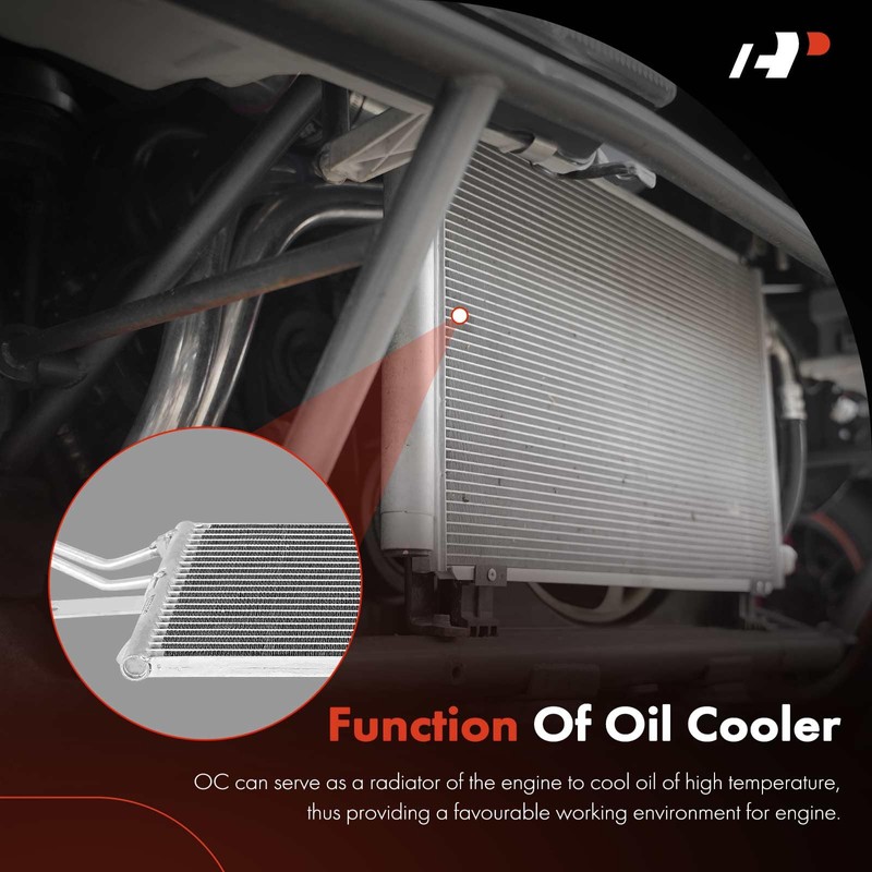 - [Function]: Oil cooler can cool the oil in time to ensure the engine parts will not be worn due to the high temperature or poor lubrication effect
