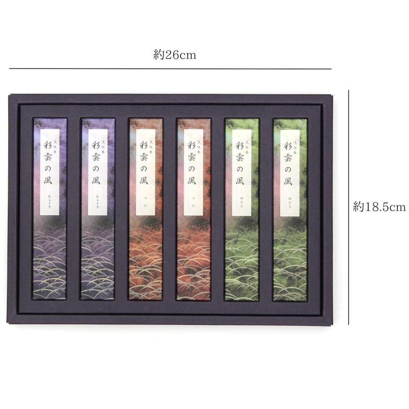 - Specifications: Dimensions (Exterior): Approx. 7.3 x 10.2 x 10.0 inches (185 x 260 x 25 mm); Contents: Approx. 90 sticks x 3 types; Smoke Volume: Low, Burning Time: Approx. 22 minutes; Fragrance: Woody, Floral, and Spicy Scents; Material: Muddy (Tub Flour, Sandalwood, Woody Flour) Green note fragrance) Country of Origin: Kyoto