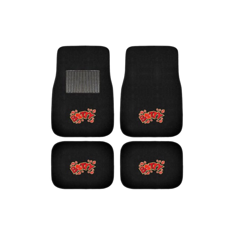 A Set of 4 Universal Fit Front and Rear Logo Plush Carpet Floor Mats - Betty