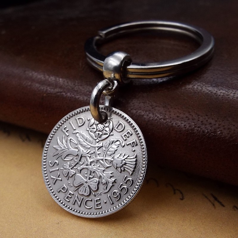 A Silver Dream 1955 Sixpence Coin Keyring 70th Birthday Anniversary Retirement His Hers Men Women