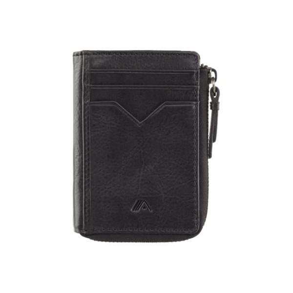 A-SLIM Compact Leather Card Holder Wallet with 2 Sided Zip + RFID Protection IRO (Black)