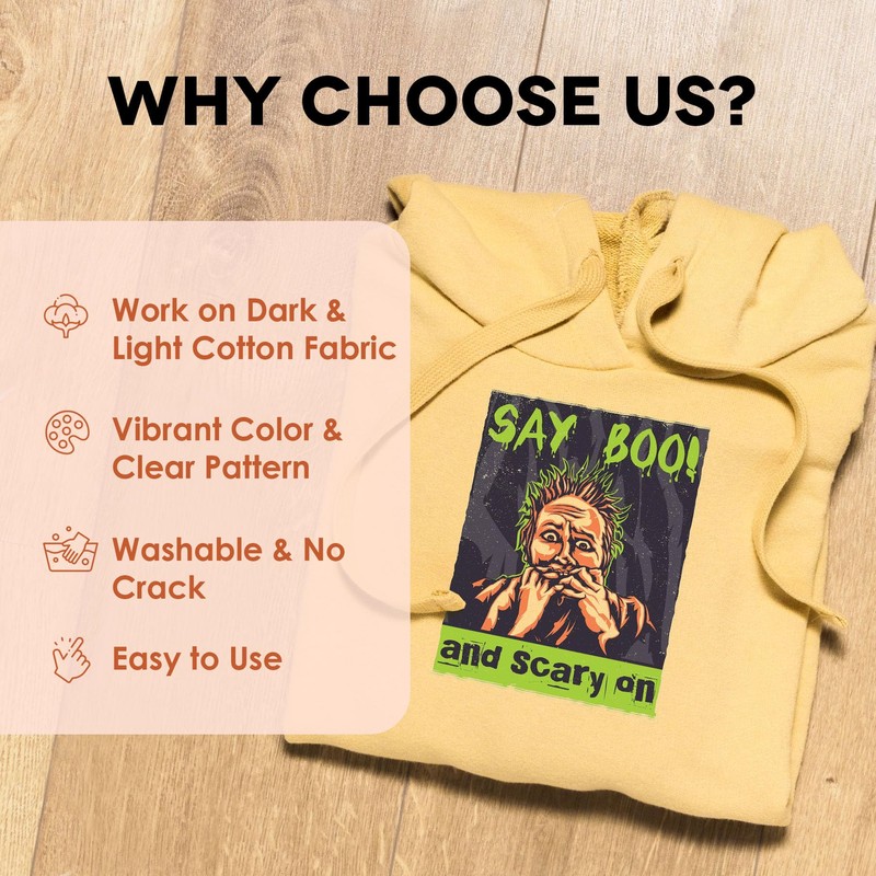 - HIGH QUALITY: Our heat transfer paper for dark fabric can transfer the most vibrant colors and provide extreme softness, stretchability, and longer-lasting work. The iron on transfer paper can washer and dryer cycles superbly and is hard to fade, crack, or peel off.