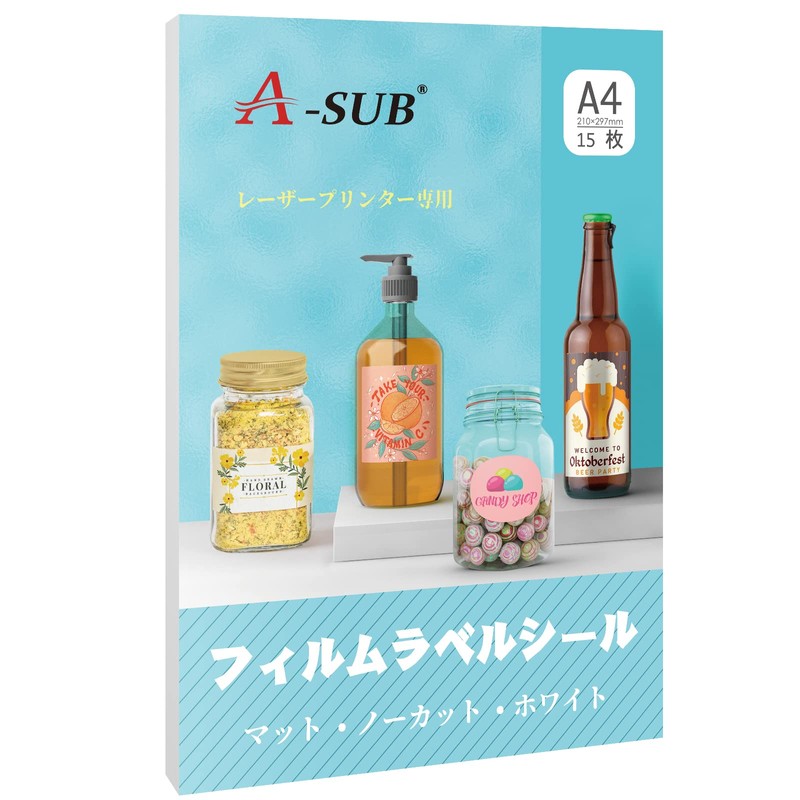 A-SUB Matte Label Stickers, Waterproof, Gloss, Laser Labels, Removable, Waterproof, Handmade Stickers, White, For Laser Printers, 15 Sheets A4