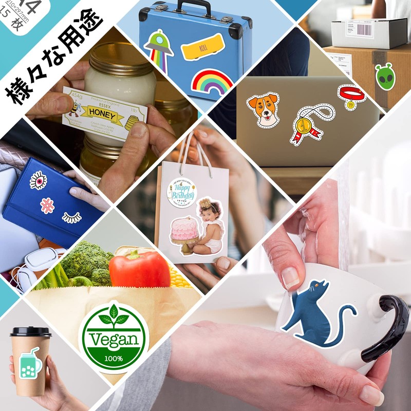 - High-quality printable PP material stickers: Seal thickness: 0.003 inches (0.08 mm), A4 - 15 sheets