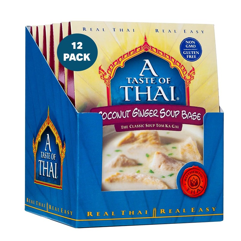 A Taste of Thai Coconut Ginger Soup Base – Authentic & Natural Ready-to-Use Thai Soup Mix – Non‑GMO & Gluten‑Free –Creamy, Aromatic Flavor for Tom Kha Gai, Curries, Soups & Stews – 2.1 oz (Pack of 12)