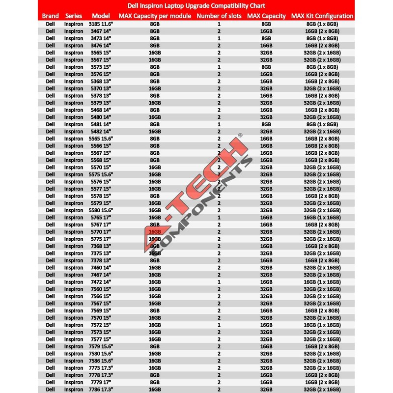 - Designed for Dell Inspiron 5000 Series 5370 5379 5480 5482 5570 5575 5576 5577 5579 5580 5765 5770 5775 Laptop & Notebook Computer Upgrading