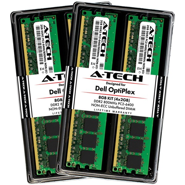 8GB KIT (4 x 2GB) DDR2 800MHz PC2-6400 Non-ECC Unbuffered DIMM Memory RAM For Dell OptiPlex Systems. Designed For Dell Optiplex Models: 960, 760, 755 (Desktop, MiniTower, Small Form Factor). A-Tech is one of the most trusted names in RAM/Memory. Backed by a Lifetime Warranty and 5 star customer support, A-Tech has you covered! RAM/Memory upgrades have never been easier. Designed specifically to help your computer run faster and smoother, an A-Tech RAM/memory upgrade is one of the most affordable and easiest ways to improve system performance. All A-Tech modules are rigorously tested to ensure that your memory meets our stringent compatibility and performance standards.