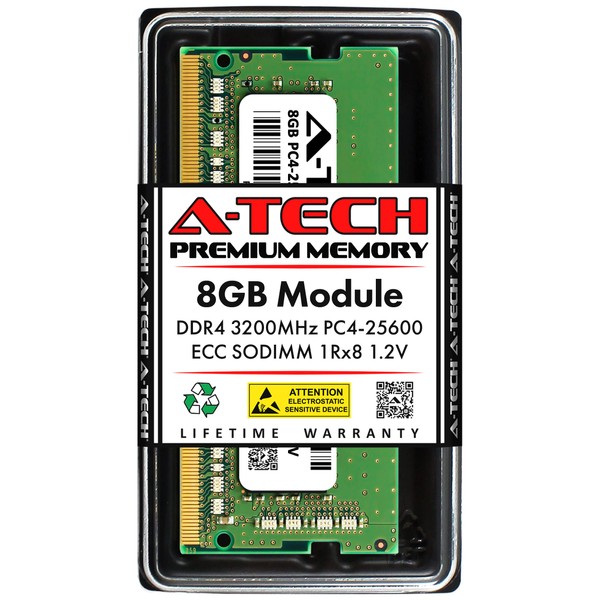 A-Tech 8GB DDR4 3200MHz PC4-25600 (PC4-3200AA) CL22 ECC SODIMM 1Rx8 1.2V 260-Pin RAM Memory for Microserver, Workstation, and Networking Platforms