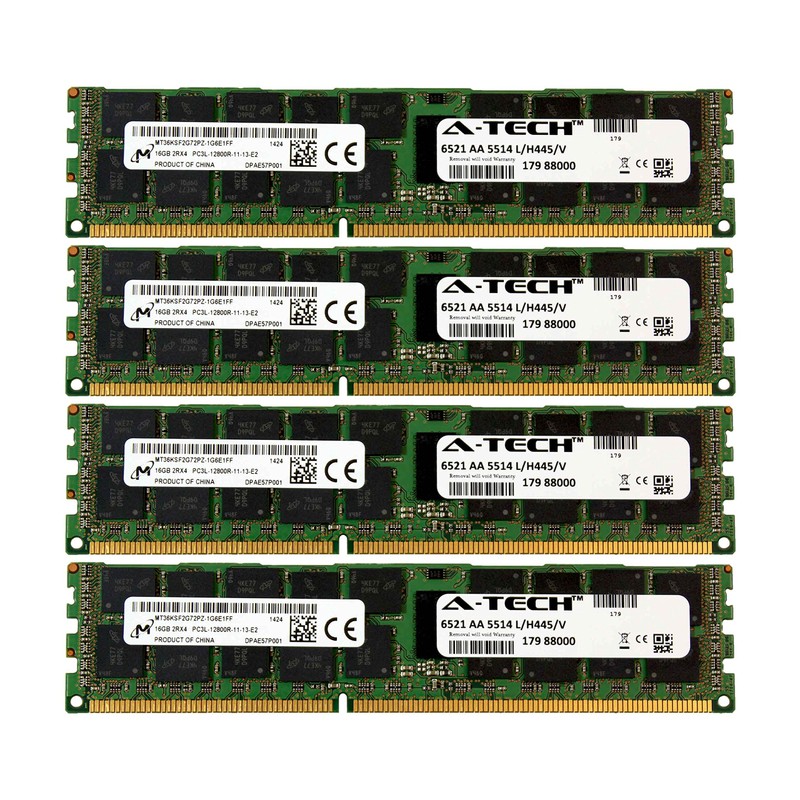 A-Tech Micron 64GB Kit 4X 16GB PC3-12800 1.35V Dell PowerEdge M710hd M820 M915 A3721494 R410 R420 R515 A3721500 R520 R610 R620 A3721505 R715 R720 R720xd Snpp9rn2c/8g R810 R815 A2626072 Memory RAM