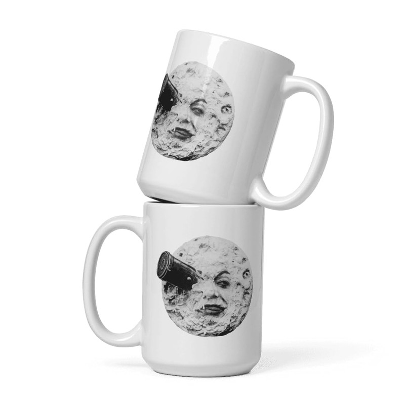This amazing mug carries a design from the classic silent film released in 1902, directed by Georges Méliès. It is considered to be the first science-fiction movie and tells the story of a group of astronomers who travel to the moon in a rocket ship