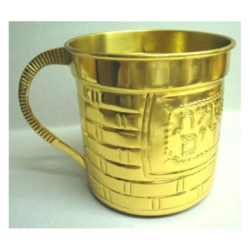 A Two Handle Netilat Yadayim Wash Cup, with NETILAT YADAIM in Hebrew, Brass