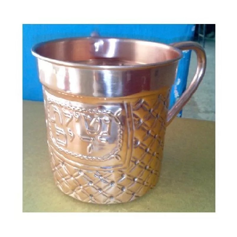 A Two Handle Netilat Yadayim Wash Cup, with NETILAT YADAIM in Hebrew, Copper