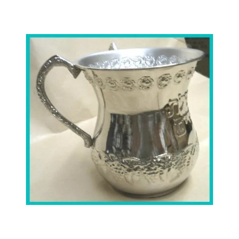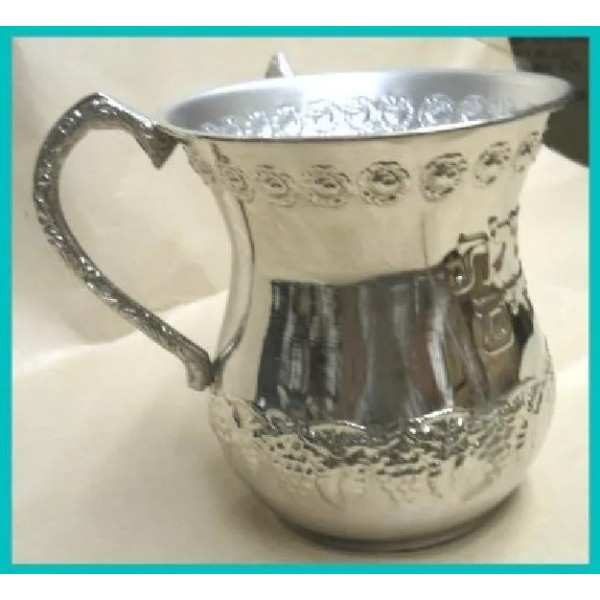 A Two Handle Netilat Yadayim Wash Cup, with NETILAT YADAIM in Hebrew, Nickel
