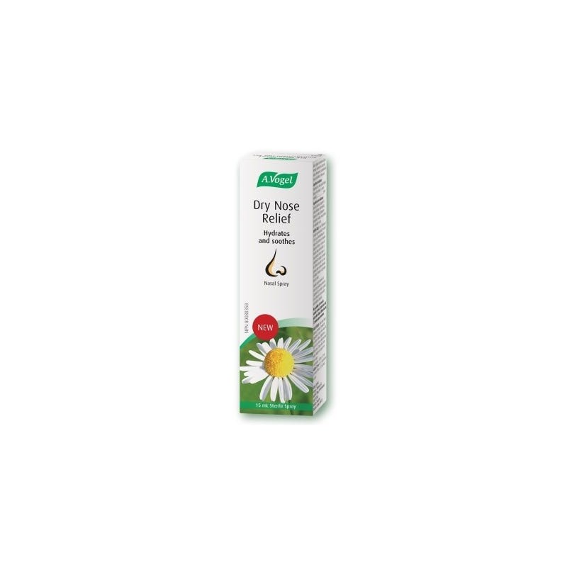 A. Vogel Dry Nose Relief nasal spray helps relieve nasal discomfort (itching, runny or stuffy nose, sneezing, mucus buildup) by lubricating nasal tissue.