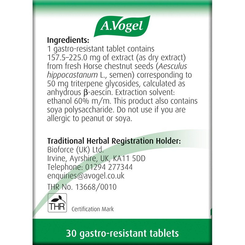 • GASTRO-RESISTANT COATING: A.Vogel Venaforce Horse Chestnut GR tablets have a gastro resistant coating to ensure they pass through the stomach without breaking down. They are then absorbed further down the digestive tract