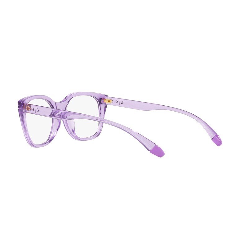 A|X ARMANI EXCHANGE Ax3099u - Marco cuadrado para anteojos graduadas de ajuste universal para mujer, Lente de demostración púrpura transparente brillante., 53 mm