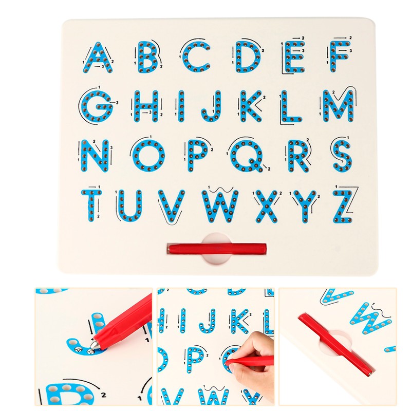 1. When point the grid surface with the magnetic pen, the metal ball will be drawn onto the surface of the drawing board; the grid has alphabetical order, allowing children to write neat letters.