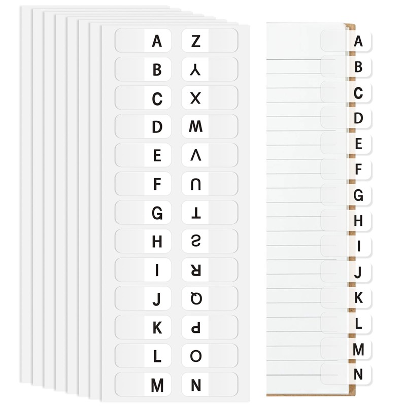 - Complete Package: Enjoy 208 white index tabs, pre-printed with black letters A-Z, spread across 8 sheets. Experience the ultimate organizational companion for your daily needs