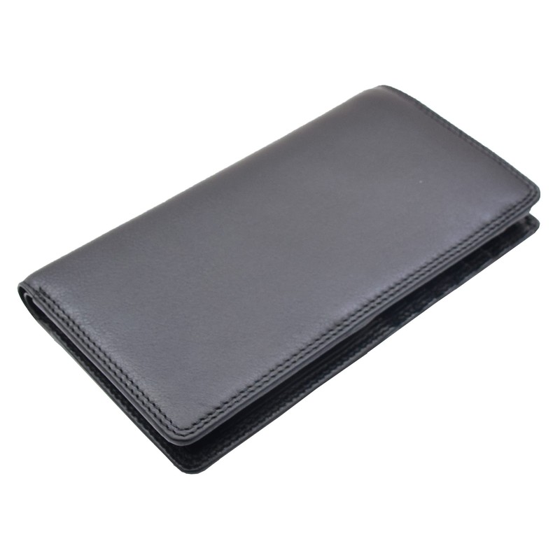 A1 FASHION GOODS Mens Real Leather Breast Wallet Vertical Bifold Cash Cards RFID Safe AT12 Black-Brown (Black)
