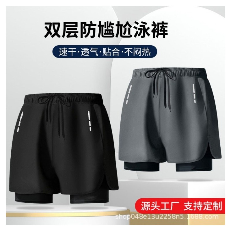 A106 Plus Size Loose-fit Sporty Double Layer Swim Trunks Plain Dk443 Black+M 10ea