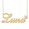 - Only Luna name necklace, NO Custom. Two colors-Silver and 18K Gold plated. Necklace chain length 16"+2"extension, and it is comfortable to wear.