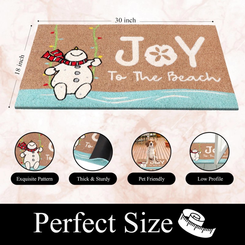 A1HC Natural Coco Coir Door Mat Joy The Beach with Heavy Duty Non-Slip PVC Ba...