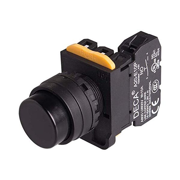 A20B-M2E01B, 22mm Momentary pushbutton Switch, Extended Head, 1NC 10A 110V, Black