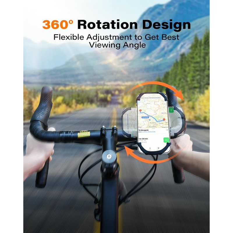 - Free Angle Adjustment: 360° rotation phone mount lets you easily switch between horizontal and vertical screen for the best viewing angle, making it easy to use your phone for music, GPS navigation, or answering calls while riding.