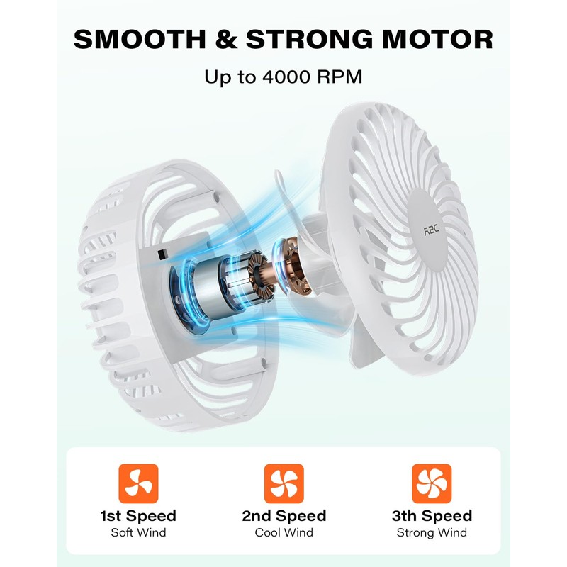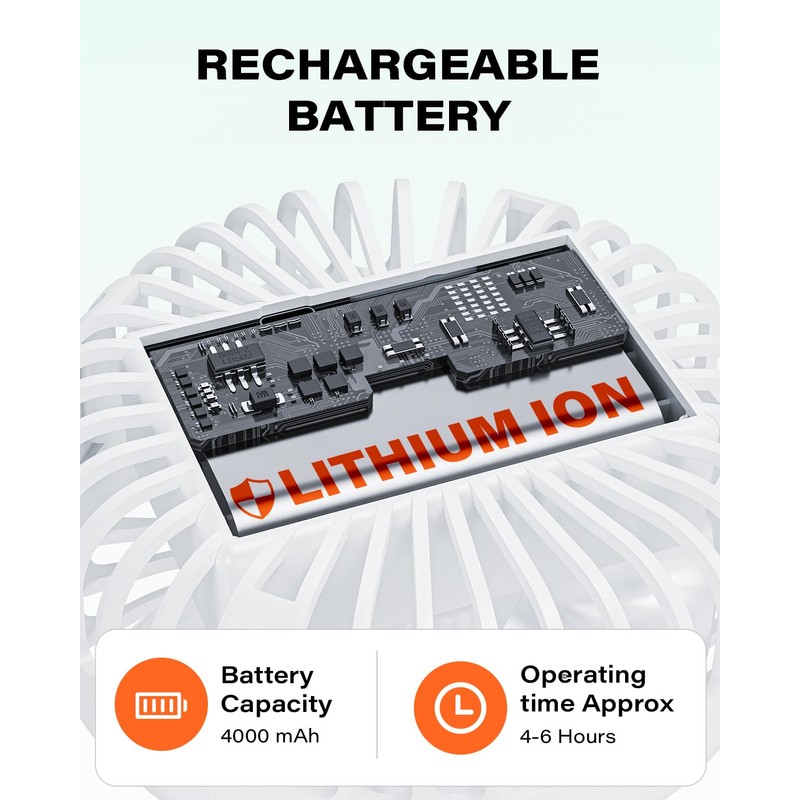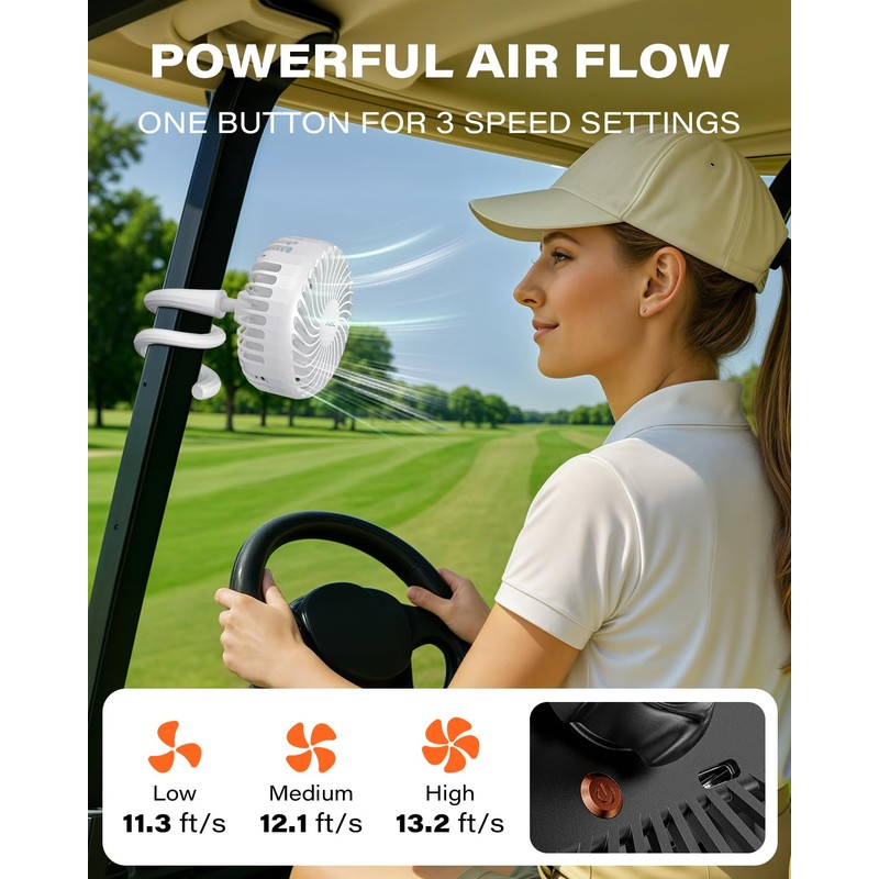 - Long-Lasting Battery for Full Rounds: Equipped with a 4000mAh rechargeable battery, the fan for golf cart delivers 4 to 6 hours of continuous airflow—keeping you cool throughout your entire game.