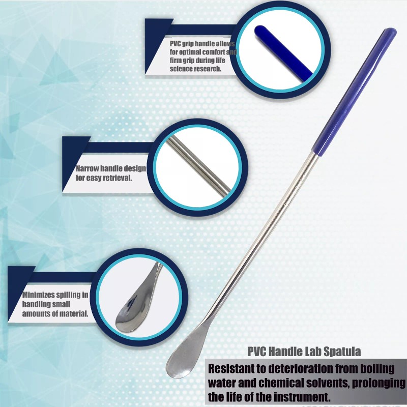 A2Z Scilab Stainless Steel Micro Lab Scoop Flat Spoon Spatula Sampler, Vinyl Grip Handle 8"