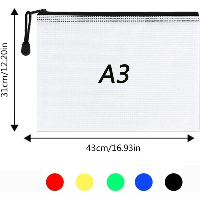 - 📕 【 PACKAGE CONTAINS】: Package includes 12 pack A3 zip file bags in 6 different zip colours. Each measures about 430 x 315 mm (16.9 x 12.4 inches).