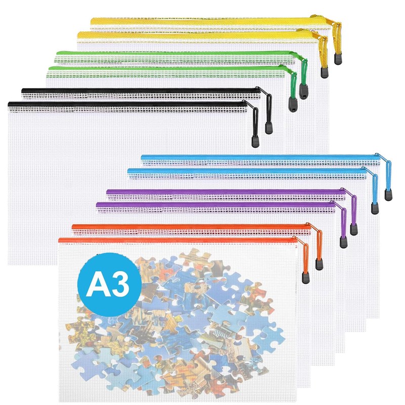 A3 Plastic Zip Wallets - 12PCS A3 Zip Lock Bags Plastic Document Folders Mesh Zipper File Bags Waterproof Travel Storage Pouch for School Office Supplies, Puzzles, Board Games & Craft Projects