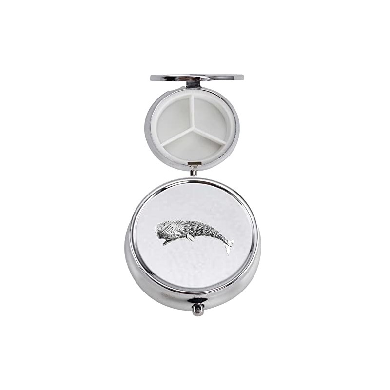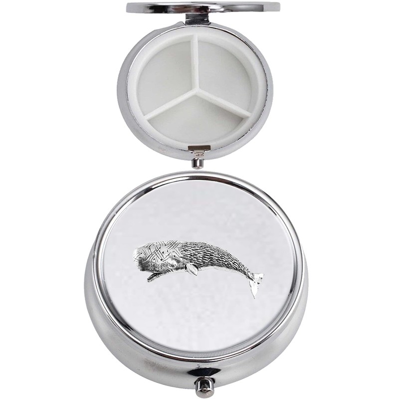 A36 Whale Design English Pewter On A Mirrored 3 Section Container Caddy Pill Box