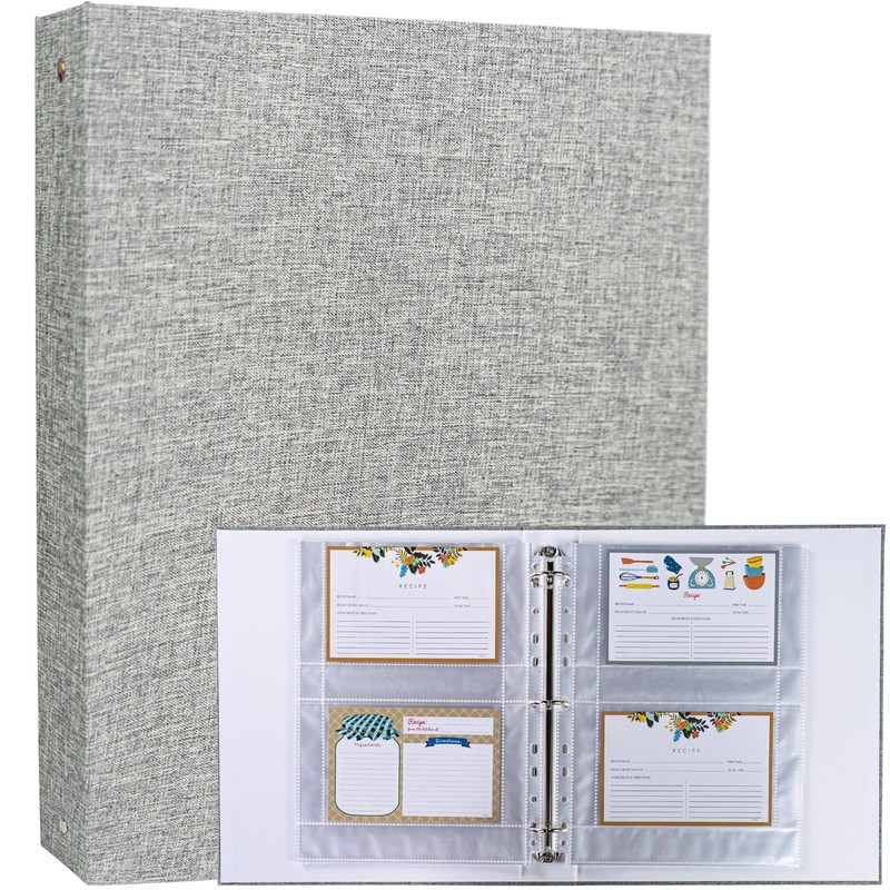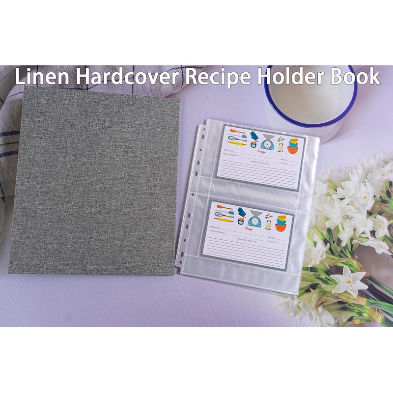 - 2,Premium Quality:The recipe album is made of hardcover wrapped in linen, looks simple and stylish, which is sturdy to last for years. The inner pages are made of good quality polypropylene, highly clarity, non-toxic, no PVC