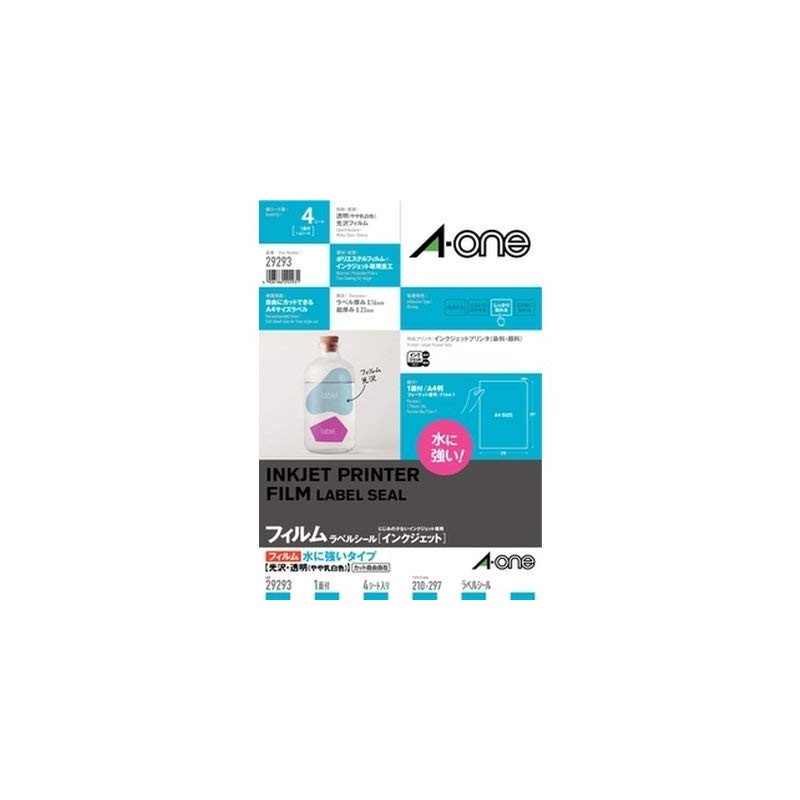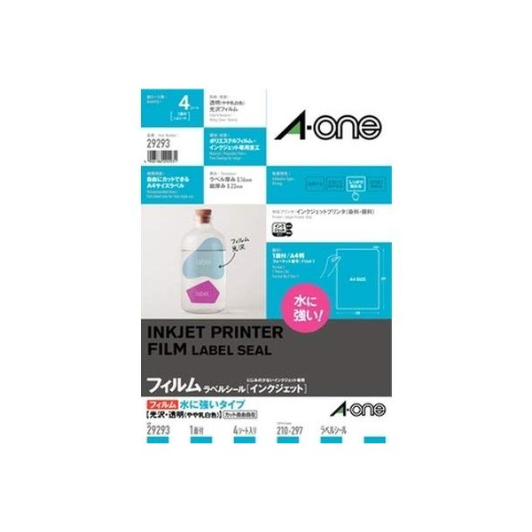 エーワン ラベルシール 耐水 光沢フィルム 透明 A4 ノーカット 4シート 29293