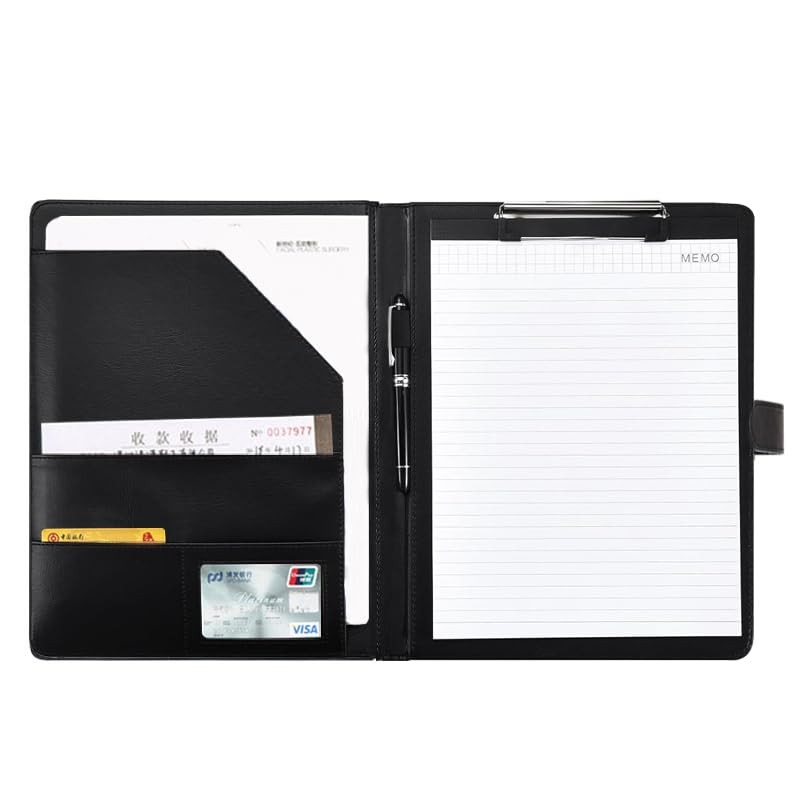 - Perfectly organised: the premium meeting folder with writing board has an inner compartment for A4 documents, 1 compartment for A5 documents and 2 small compartments for business cards and is ideal as a versatile business folder.